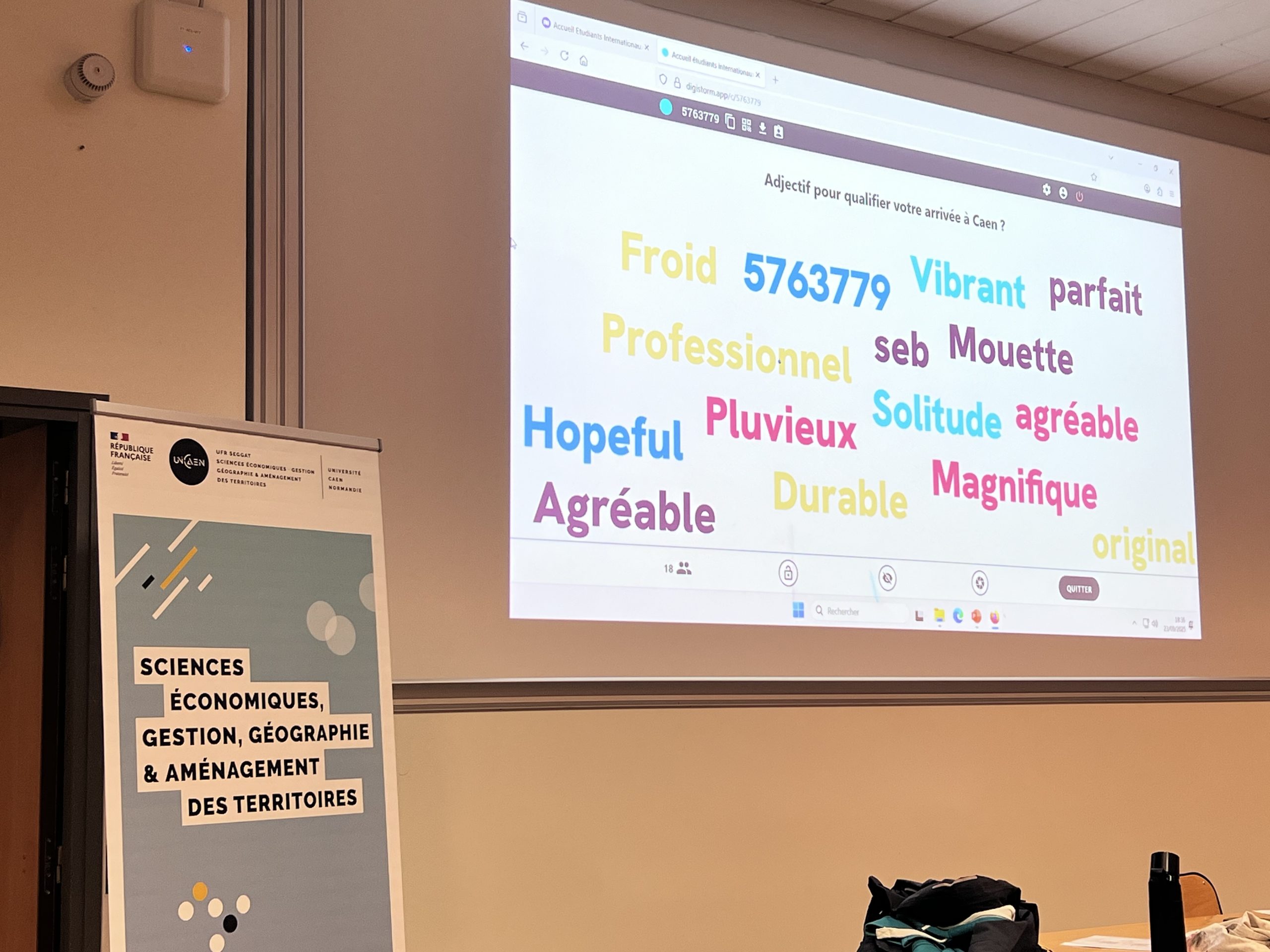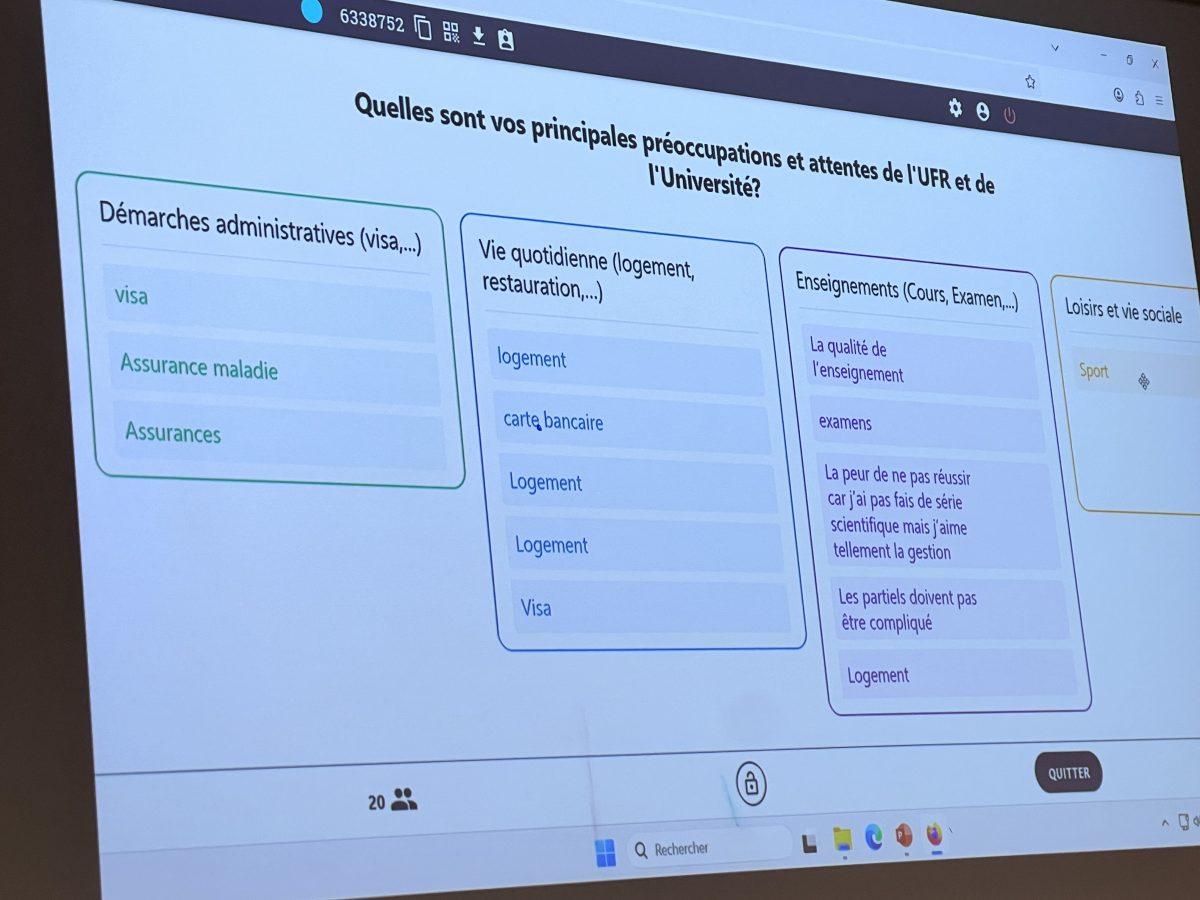 Le programme a alterné entre informations pratiques, temps d’échanges et activités participatives (présentation interactive des lieux de naissance sur carte, nuages de mots, brainstorming sur les préoccupations et attentes des étudiant·e·s).